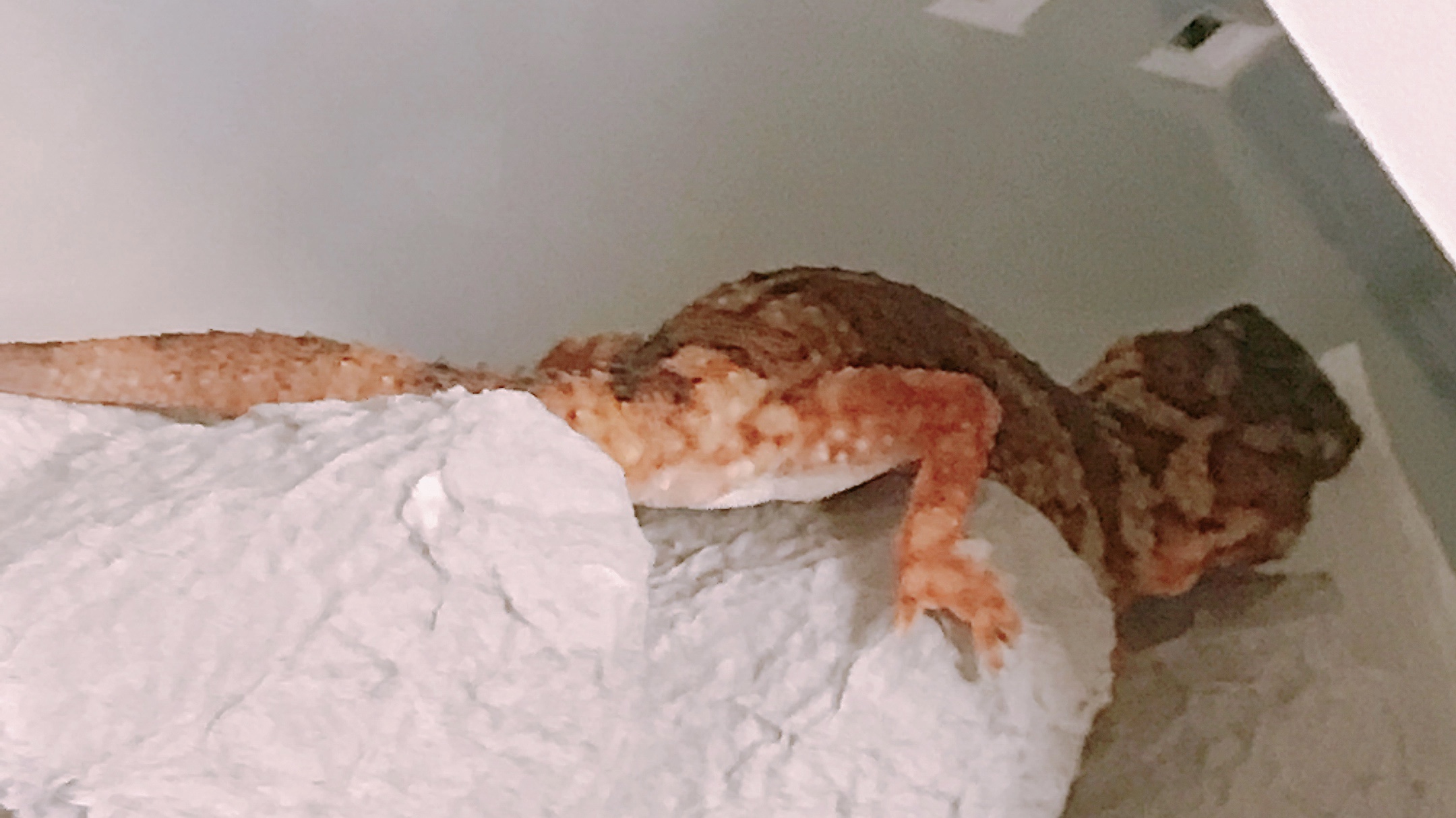 계란판에서 내려논 채로 그대로 얼음이 돼버린 녀석 발바닥이다. 처음 입양했을 때 이러고 자는 모습을 보곤 혹시나 잘못된 건 아닌지 가슴 졸이던 때가 엊그제 같은데 시간이 빠르다. 이 친구는 꼬리 끝이락 발가락 끝이 하양하양한게 특징인데 꼬리 끝도 발가락 끝도 동글동글한 게 너무 귀염 뽀짝 하다. 다른 도마뱀과 비교하면 크레스티드 게코나 에이미아이 베이비에 비해서는 꽤 큰 편이기 때문에 핸들링 하기에도 좀 더 부담이 덜 한듯하다. 솔직히 크레스티드 게코 베이비는 생후 한 달 경 집에 데려왔을 때는 너무너무 작아서 어떻게 잡아야 할지, 핸들링은 어찌해야 할지 너무 어려웠는데 말이다. 그리고 무엇보다 밥을 항상 잘 먹는다! 어느 정도 나면 크레스티드 게코 밥 먹일 때 속이 답답하던 게 이 친구 밥 주면 쑥 내려가는 기분이랄까? 정말 최고다!