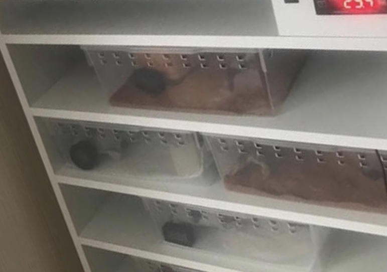 헬멧티드 게코는 하부 열원이 필요한 도마뱀으로써 기존에 사용하는 렉사가 있으신 분들은 렉사 사육이 가능합니다. 또한 사육자 개별 취향에 따라 별도의 뚜껑이 있는 플라스틱이나 유리 사육장 또한 사용 가능한데 이 경우에는 별도의 하부 열원 패널이 필수입니다. 사육장이 크기는 쿨존과 핫존이 명확히 구분될 수 있는 최소 30cm 이상의 크기가 좋습니다