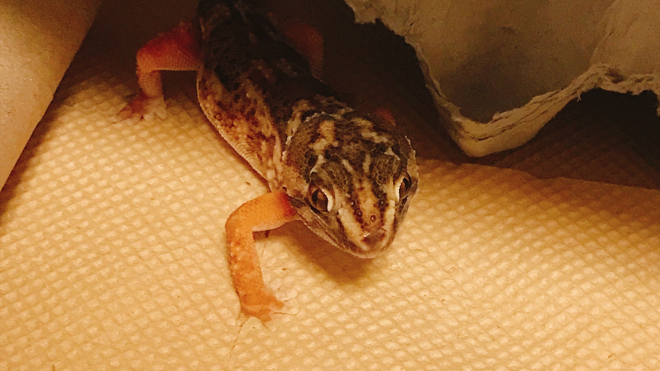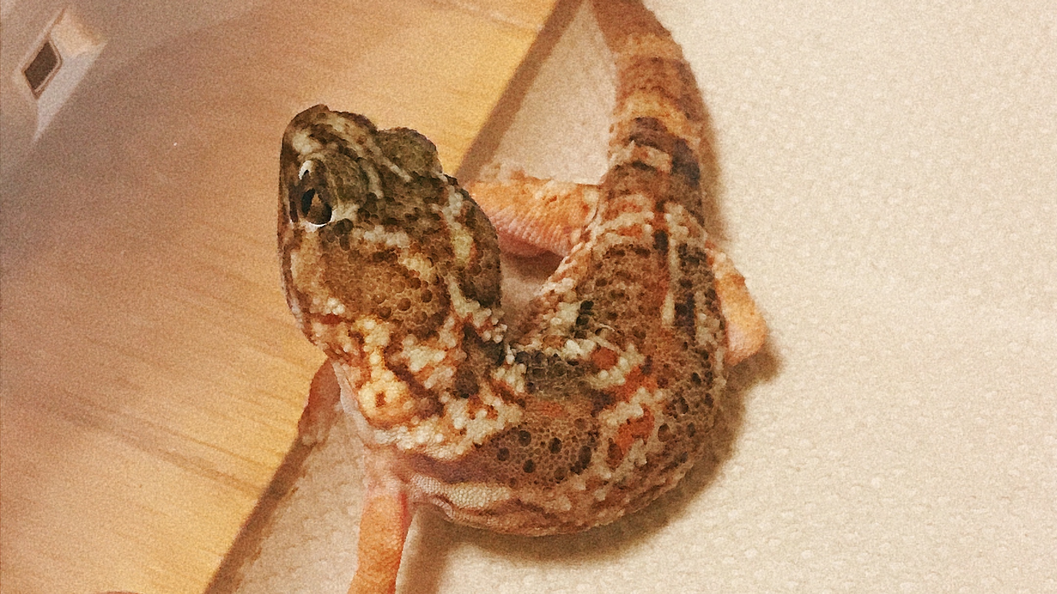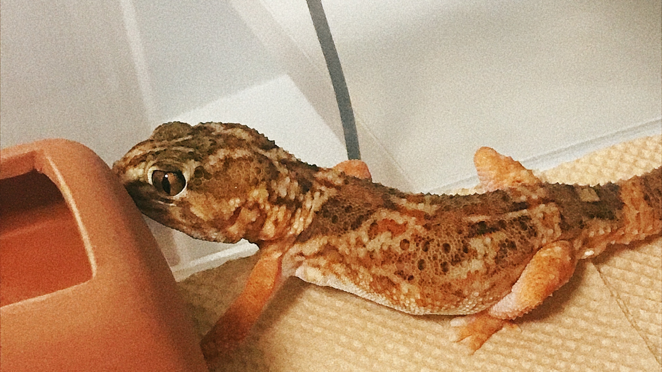 생긴 건 제가 보기에는 다람쥐를 많이 닮은 것 같아요. 먹성은 항상 좋아서 이제는 살도 통통히 오르고 겨드랑이에도 칼슘 주머니가 좀 생기는 듯합니다. 잘 먹는 만큼 잘 싸는데 크레스티드 게코나 헬멧티드 게코, 에이미아이는 밥을 먹고 나면 바로 싸는데 앙굴리퍼는 바로 싸지는 않아요. 대신 한번 쌀 때는 크레 똥 2배에서 2.5배 정도 크게 싸는 거 같아요. 그리고 크레스티드 게코는 여기저기 싸는 반면 앙굴리퍼는 항상 정해진 장소에 배변을 하는 듯해요. 앙굴리퍼 게코의 다른 명칭이 Nambid sand gecko이기도 하고 지금은 분양자분 추천으로 베이비 임팩션을 예방하기 위해 키친타월에서 사육을 하고는 있지만 좀 더 크면 사막 모래를 깔아줄 생각인데요.
