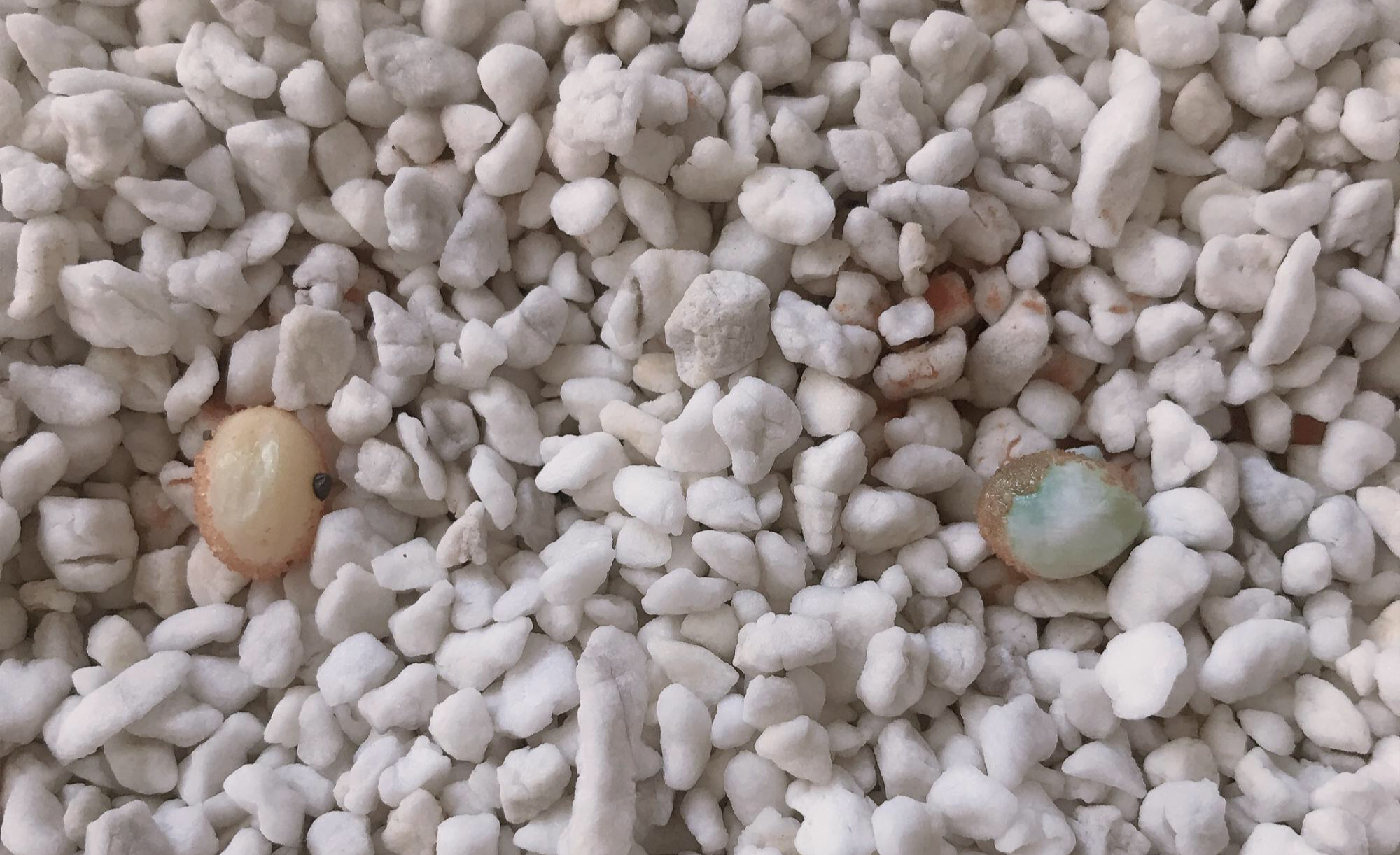 그리하여 독수공방 할뻔한 또 다른 수컷, 한 삽에서 원래 쌍으로 분양받은 녀석이고 EUCB라고 하셨어요. 분양받을 때 원래 한 사육장에서 동거 동락하던 녀석들이라 그런지 금방 서로 붙어 지내는데 메이팅은 한 건지 못한건지 다행히 사이좋게 붙어있는 모습만 봤네요. 그렇게 일주일 정도 합사를 시키고 다시 분리 사육에 들어갔답니다. 그리고 2월 13일 2차 산란으로 첫 알을 낳은 지 41일 만에 슬러그 없이 그냥 알을 하나만 낳았어요, 그것도 핫존에다가.. 좀 늦게 발견해서 모래 쪽 절반이 찌부가 돼 있었지만 혹시나 하는 마음에 알 세팅을 해줬었는데 안타깝게 알은 역시나 약간 노란빛을 돌며 상한 냄새가 약하게 나서 치우고 나서, 3월 22일 3차 산란으로 또다시 알을 한 개 낳았어요. 3차 산란은 2차 산란 후 37일 만으로, 2차 41일보다는 주기가 좀 짧아졌네요. 그리고 계속되는 산란으로 체력이 떨어져 소화력도 떨어진 건지 완전히 소화되지 않은 밀웜이 나왔길래 다시 슈푸 피딩으로 바꿔주었어요. 헬멧티드 게코는 한번 산란할 때 1~2개의 알을 6차까지 낳을 수 있다고 들었는데 연속해서 알을 하나씩만 낳는 걸 보니, 혹시 영양분이 부족한가 하는 생각이 들어서 슈푸 피딩할때 칼슘도 극소량 처방했더니 4차 산란은 3차 알을 산란을 한 지 11일밖에 되지 않아 알을 2개 딱 낳아줬네요. 물론 핫존에다 낳아서 하나는 계란판에 깔려 붙어 있었고 하나만 모래 위에 잘 있었지만 살살 분리해서 둘 다 펄라이트 위에 세팅해 줬어요.