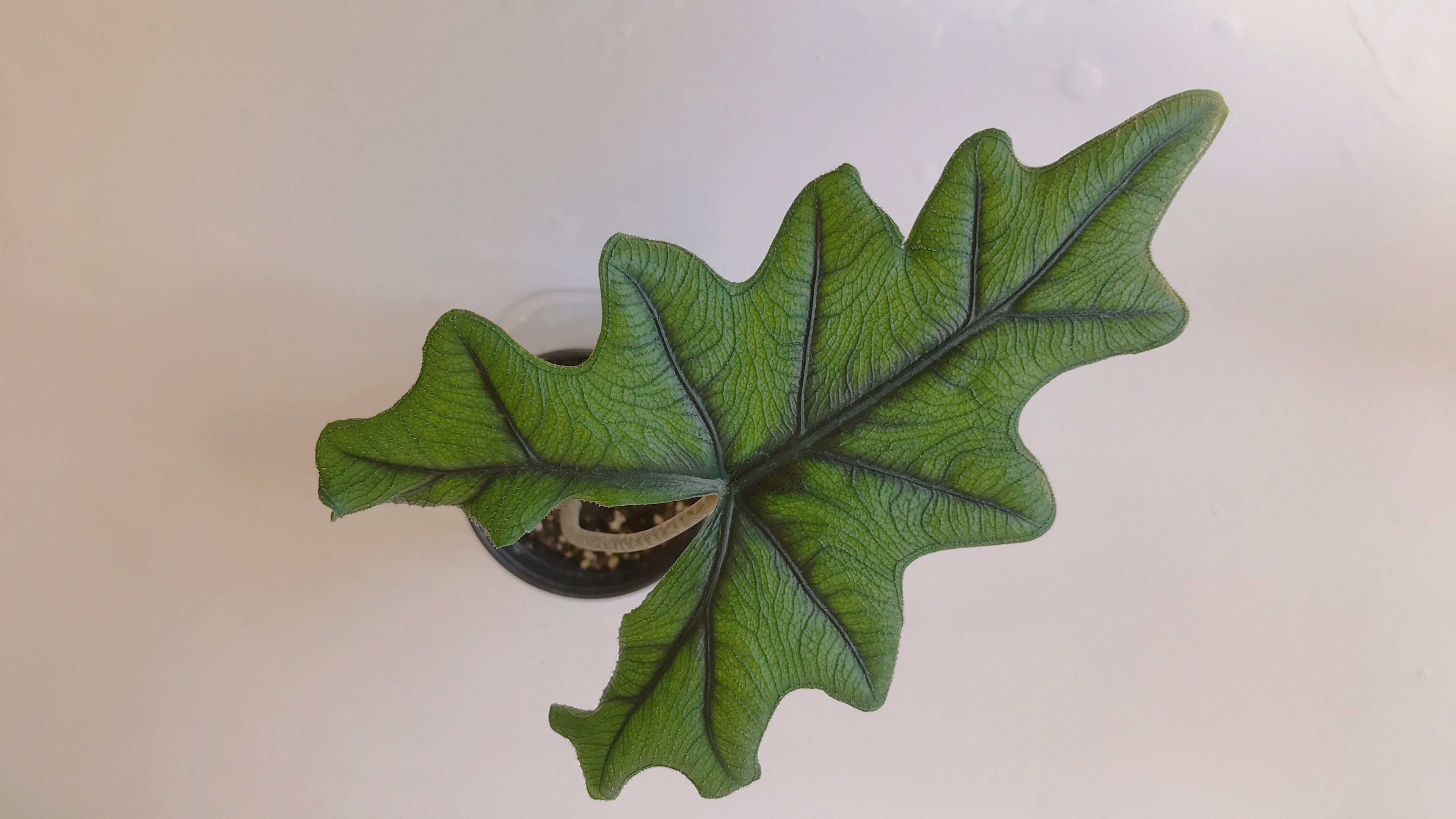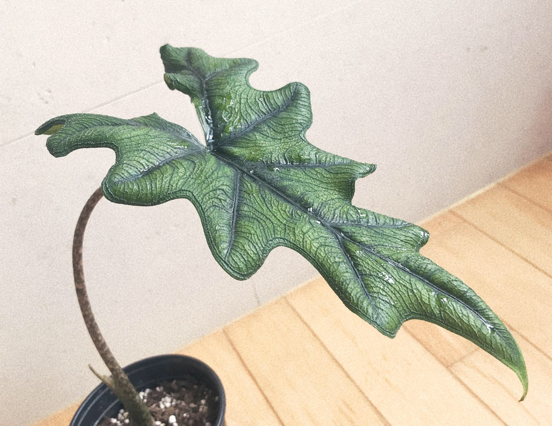 알로카시아 잭클린은 동남아시아의 인도네시아 북부 술라웨시가 원산지로 알려져 있습니다. 잎의 폭이 좁은 네로우 형과 베이직 폼이 있습니다. 알로카시아 잭클린은 독특한 잎모양과 텍스쳐로 희귀 식물 수집가들 사이에서 큰 사랑을 받는 열대 식물입니다. 잎 윗면의 양쪽에서 갈라진 귀 부분부터 잎의 아래쪽 꼬리까지 이어진 양쪽 가장자리의 모습이 마치 물결모양처럼 굽이치며 화려한 모습을 보여줍니다. 알로카시아 잭클린의 잎의 표면은 마치 플라스틱이나 고무 같아 보이는데 질감 또한 여느 식물들과는 다르게 독특합니다. 이러한 물결무늬 모양의 유니크한 잎의 모양은 이파리가 막 올라와 말려있는 상태에서부터 관찰됩니다. 막 피어난 알로카시아 잭클린의 어린잎은 연한 연녹색을 띠다가 자라면서 점차 색상이 짙어집니다. 특히 잎 표면의 중심 잎맥이 점차 짙은 녹색으로 바뀌는데 이 잎맥의 짙은 색감이 점차적으로 뻗어나가며 잎 전체에 환상적인 컬러 베이에이션이 생깁니다. 알로카시아 잭클린의 잎의 줄기 또한 처음에는 연한 녹색을 띠다가 자라면서 점차 짙은 갈색 얼룩무늬의 패턴을 띄게 됩니다.