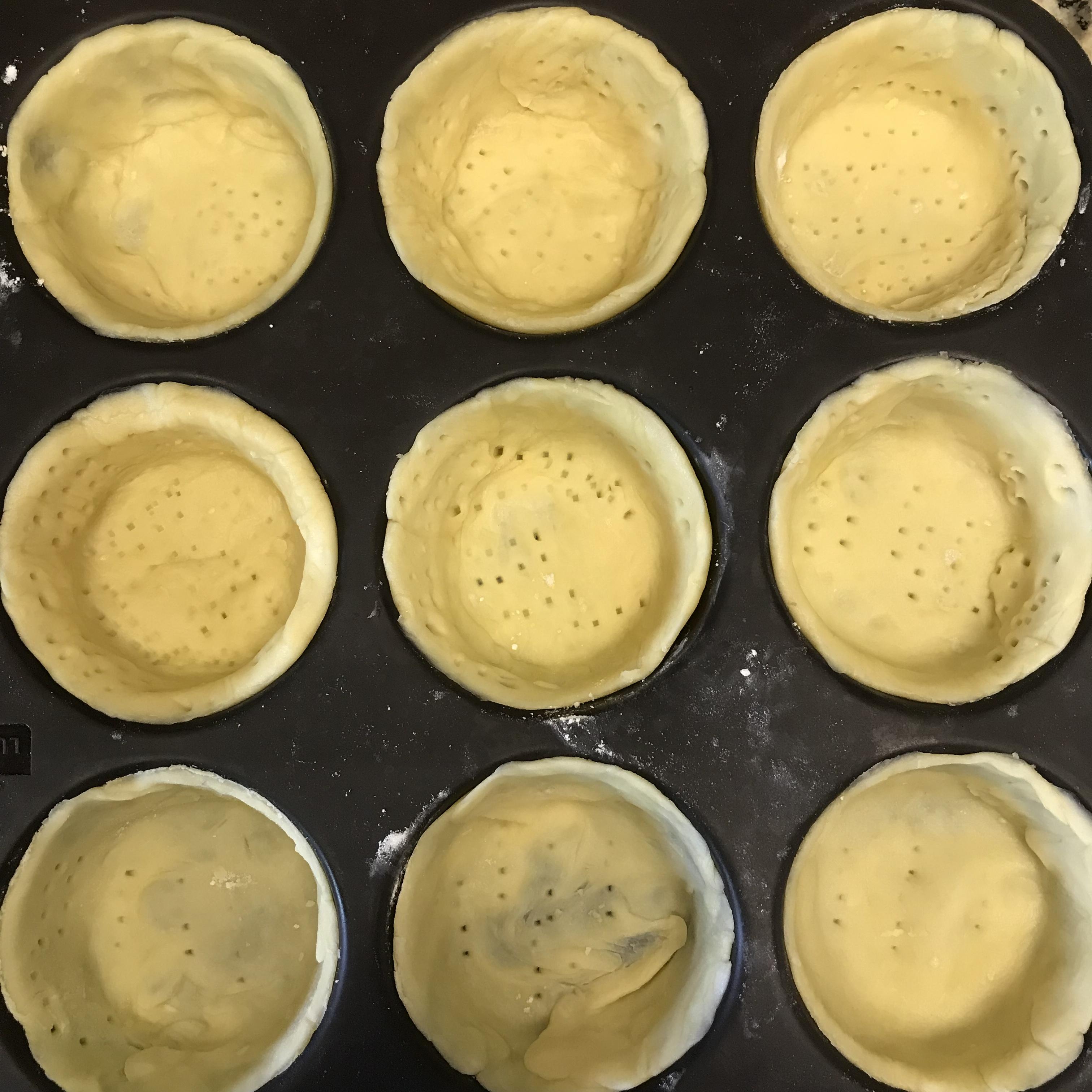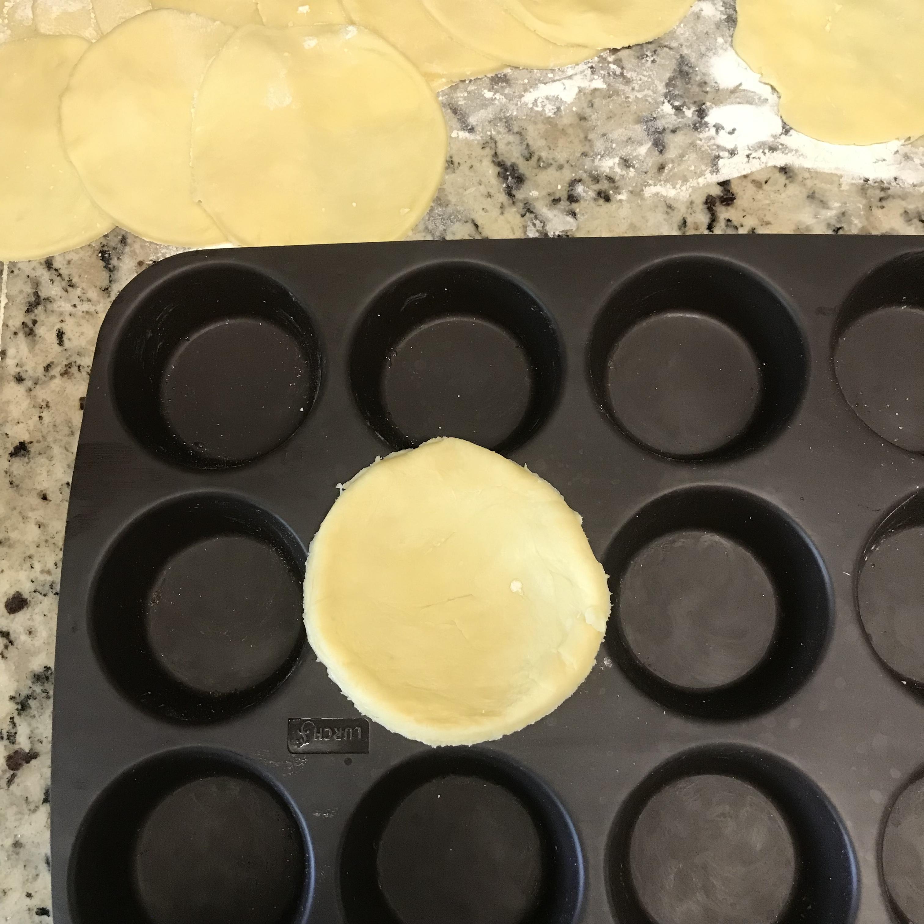 6. 5의 완성된 원형 반죽을 머핀 틀에 넣고 모양을 잡아 줍니다, 겹치는 부분은 손가락으로 살짝 눌러 두께를 비슷하게 맞춰 줍니다.