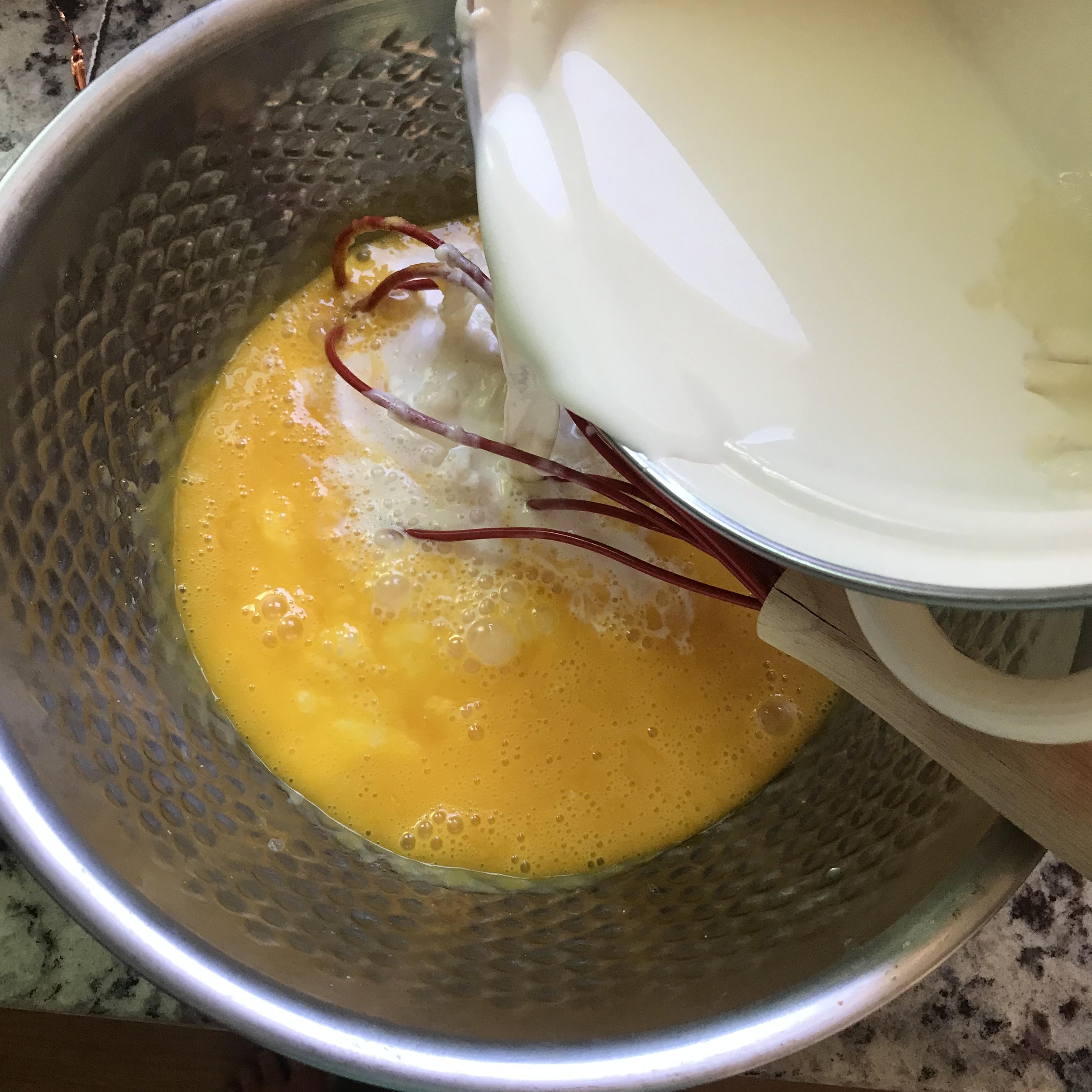 Tip. 냄비의 내용물이 완전히 식히지 않고 달걀노른자와 섞을 경우, 노른자가 익을 수 있으니 주의합니다! 좀 더 부드러운 필링을 원할 경우 체에 한번 걸러줍니다.