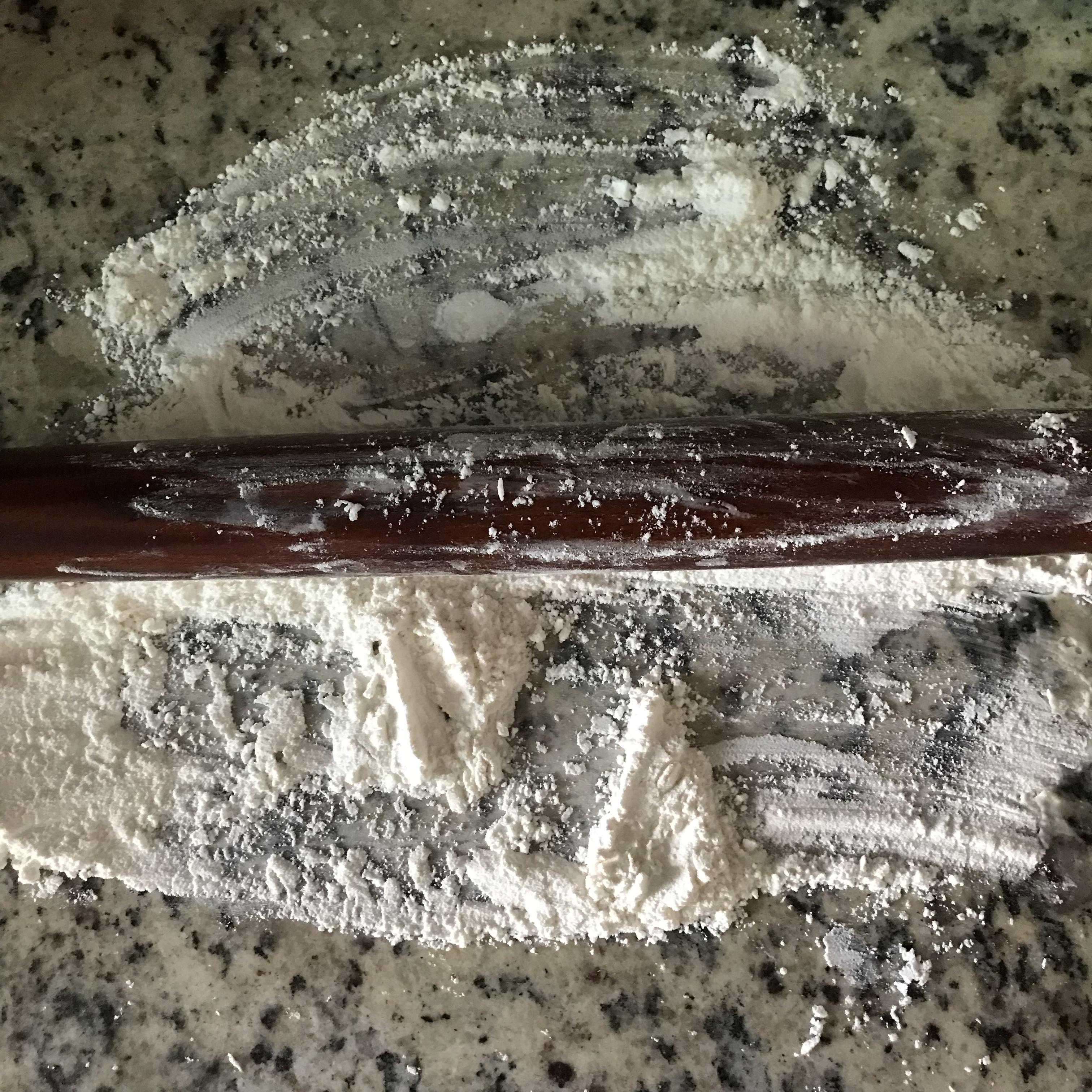 Tip. 싱크대 상판이 대리석일 경우 위를 깨끗이 닦은 후 밀가루를 한 줌 뿌려 줍니다, 밀대에 밀가루가 닿을 부분에도 밀가루를 묻혀서 반죽이 달라붙지 않게 합니다.