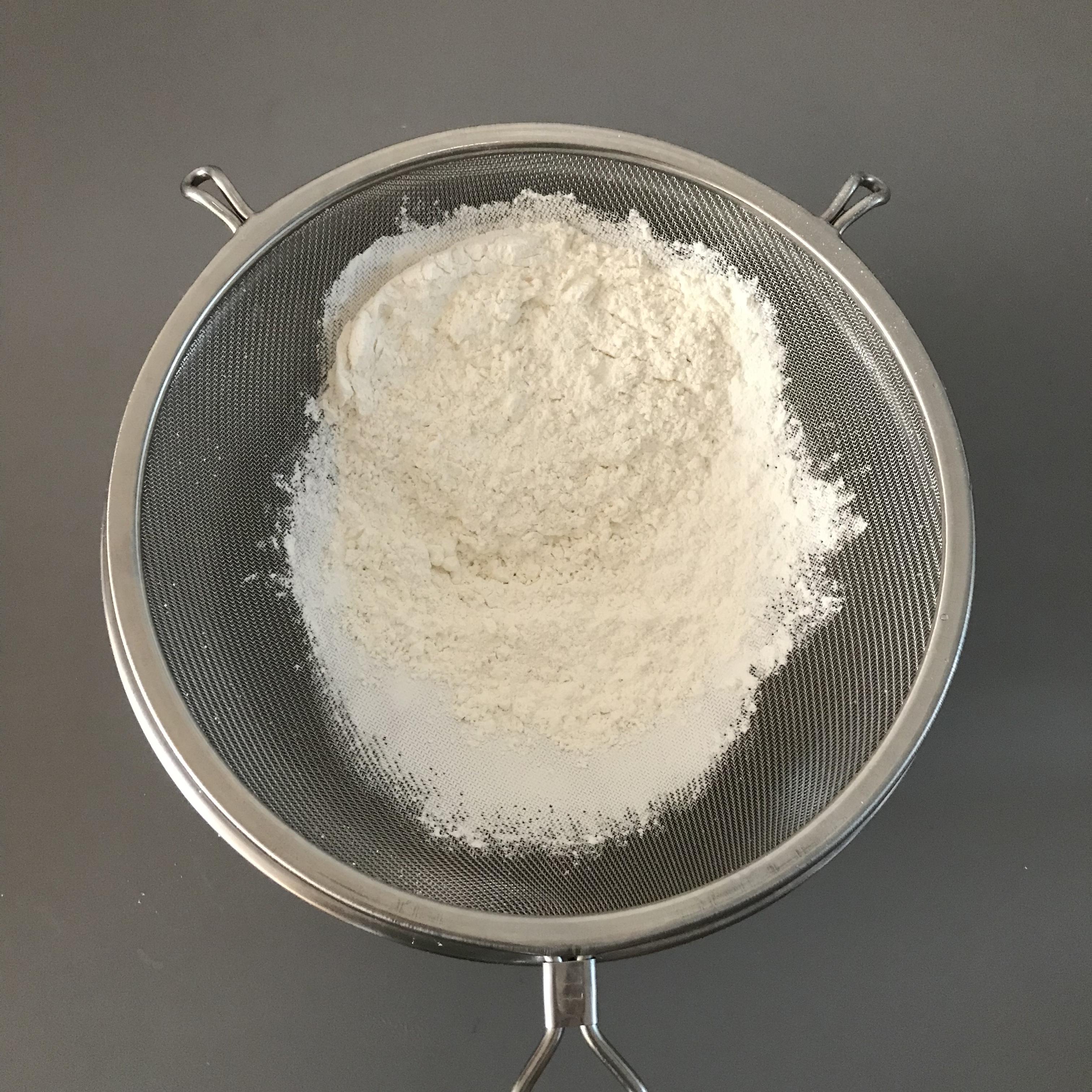 1. 박력분 120g을 체에 걸러 믹싱볼에 준비합니다.