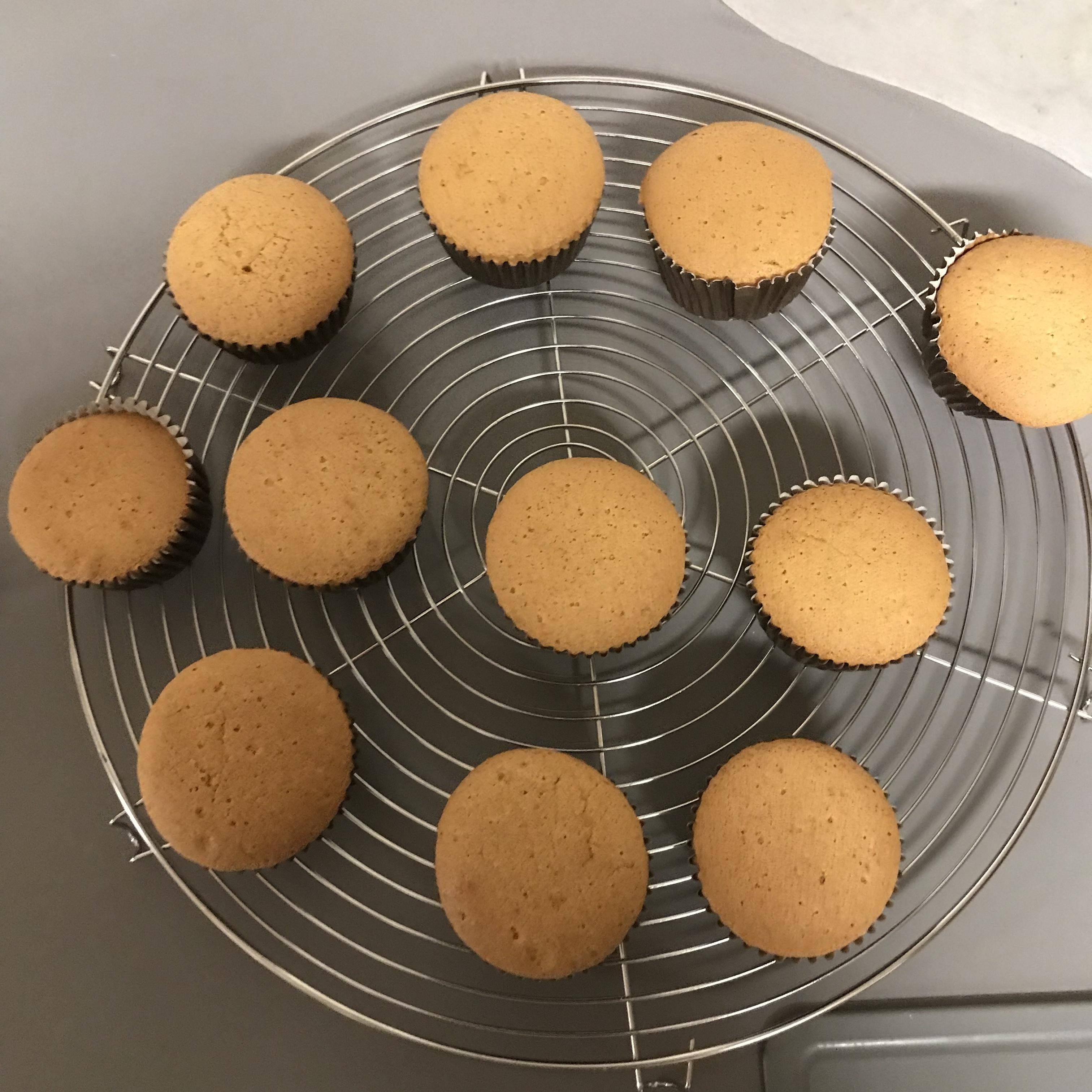 9. 오븐에 넣어 40-50분 정도 구우면 맛있는 카스테라 빵이 완성되는데요. 종이호일을 깔고 그 위로 머핀 틀을 뒤집어 카스테라 빵을 분리하고 식힘망 위에서 식혀주면 간식으로 훌륭한 맛있는 카스테라가 완성입니다!