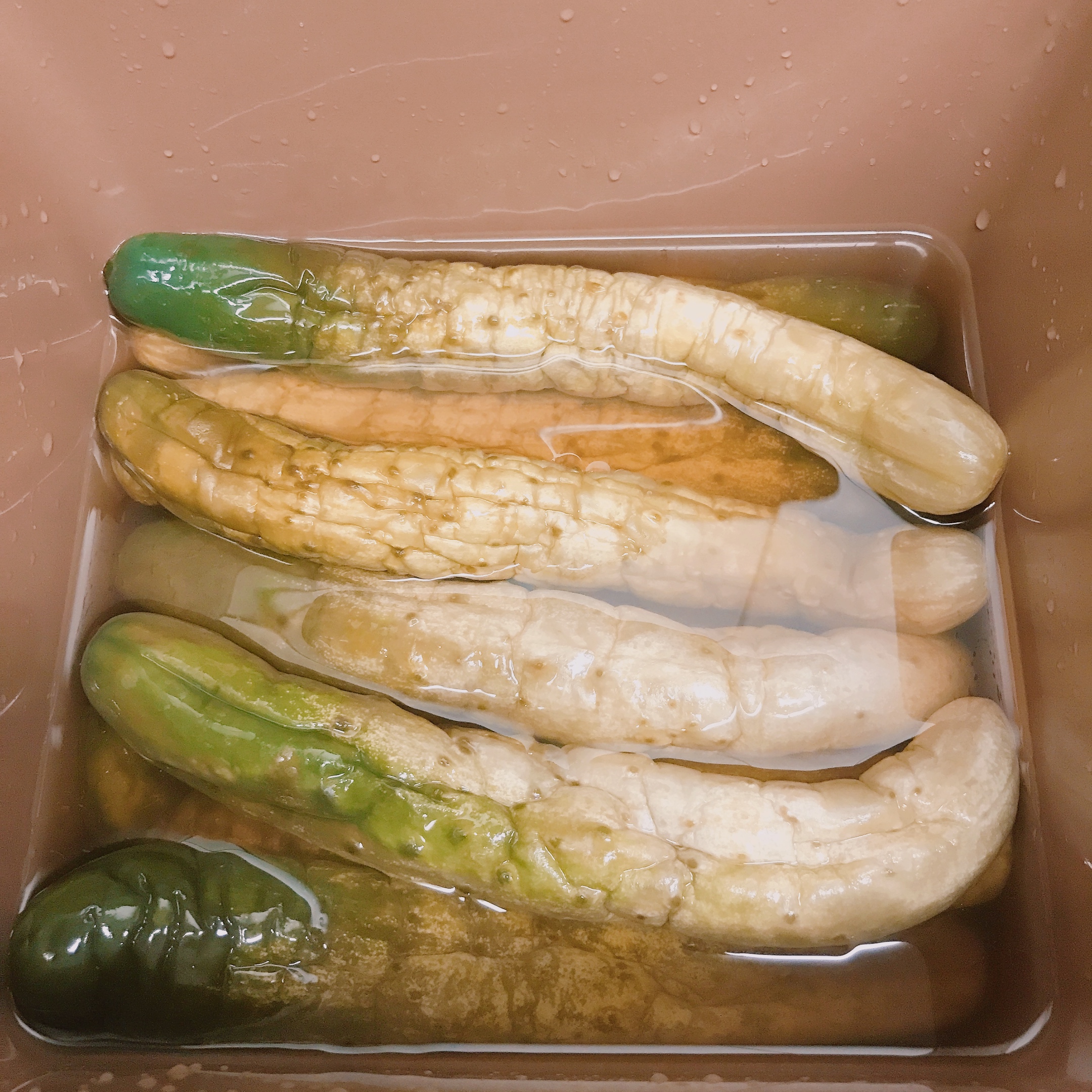 Tip 겨울철에는 오이가 절여지는데 4-5일 정도 걸릴 수 있어요. 또한, 오이를 깊은 통에 넣어야 하는 이유! 높이가 낮은 통에 넣을 경우 삼투압 작용으로 오이에서 계속 수분이 빠지기 때문에 물 수위가 점점 높아져서 결국 깊이가 깊은 통으로 다시 옮겨 줘야 해요!
