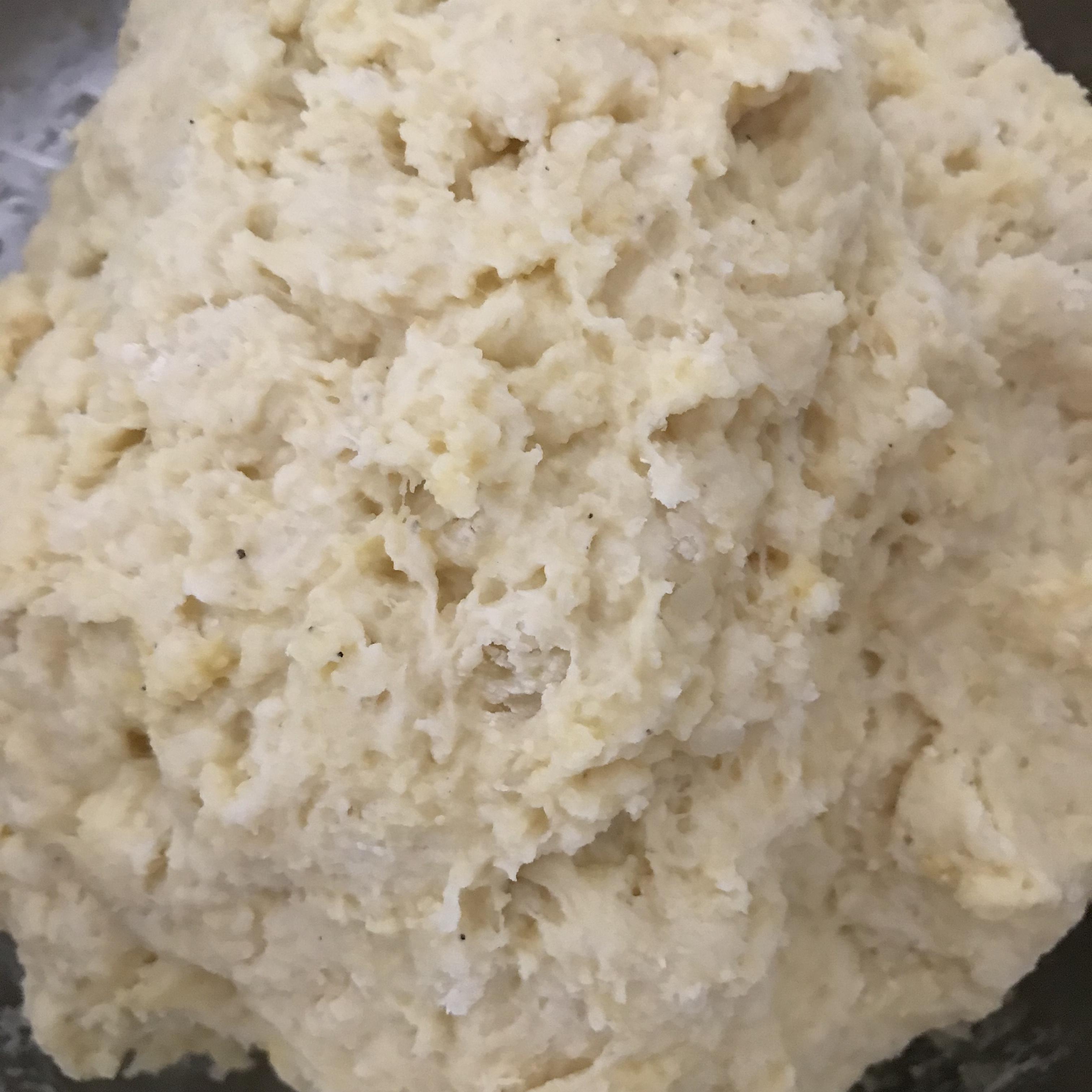 Step 3 으깬 감자에 밀가루 300g, 파마산 치즈 20g, 소금 후추를 기호에 맞게 약간씩 넣고 잘 섞어 둥근 형태로 만듭니다.