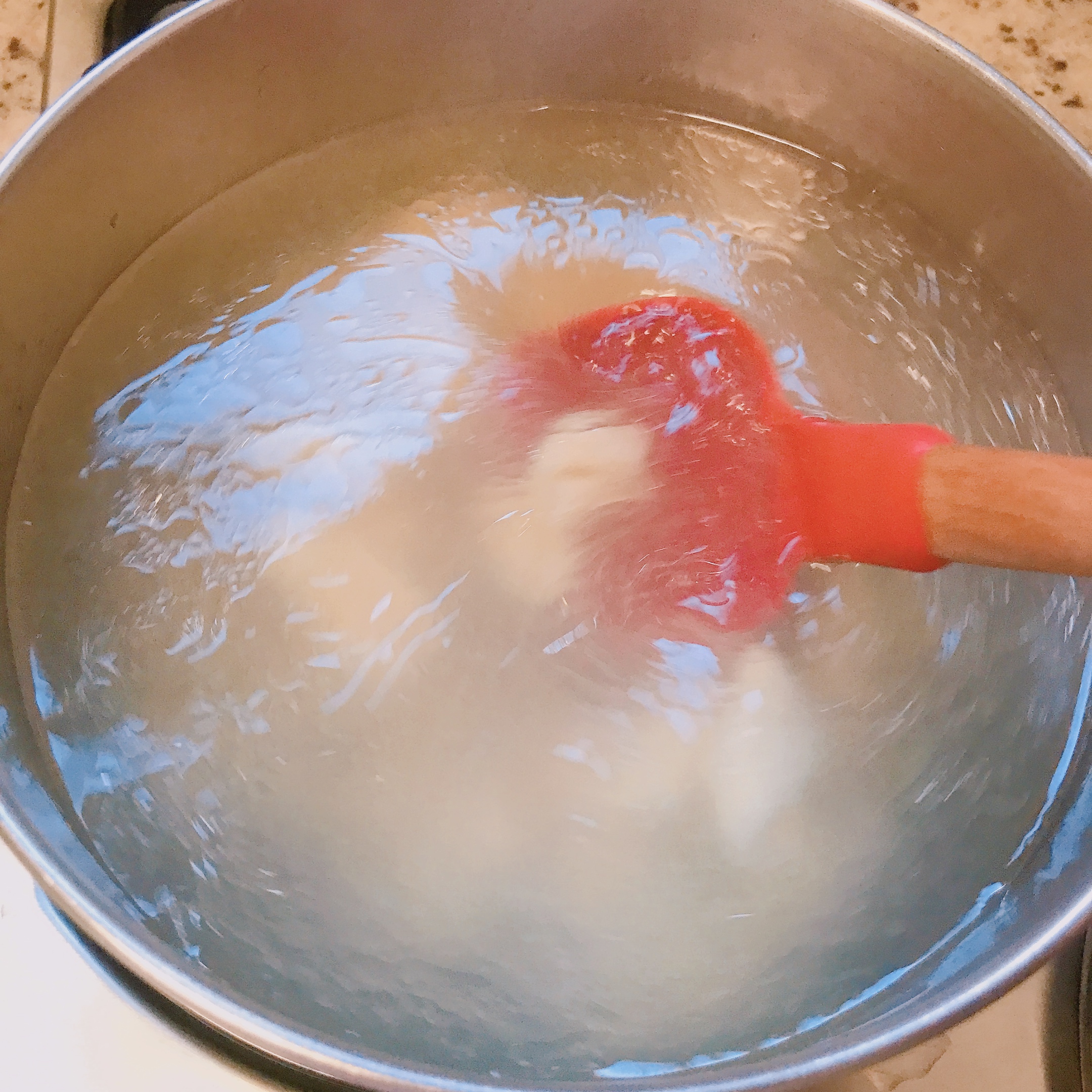 Step 7 완성된 뇨끼 반죽을 끓는 물에 올리브 오일을 약간 넣고 파스타 면처럼 넣어 줍니다. 뇨끼가 물 위로 둥둥 떠오르면 잘 익은 것이기 때문에 바로 건져 주시면 돼요, 너무 오래 익히면 뇨끼가 흐물흐물해져서 뇨끼 특유의 식감을 살릴 수가 없어요.