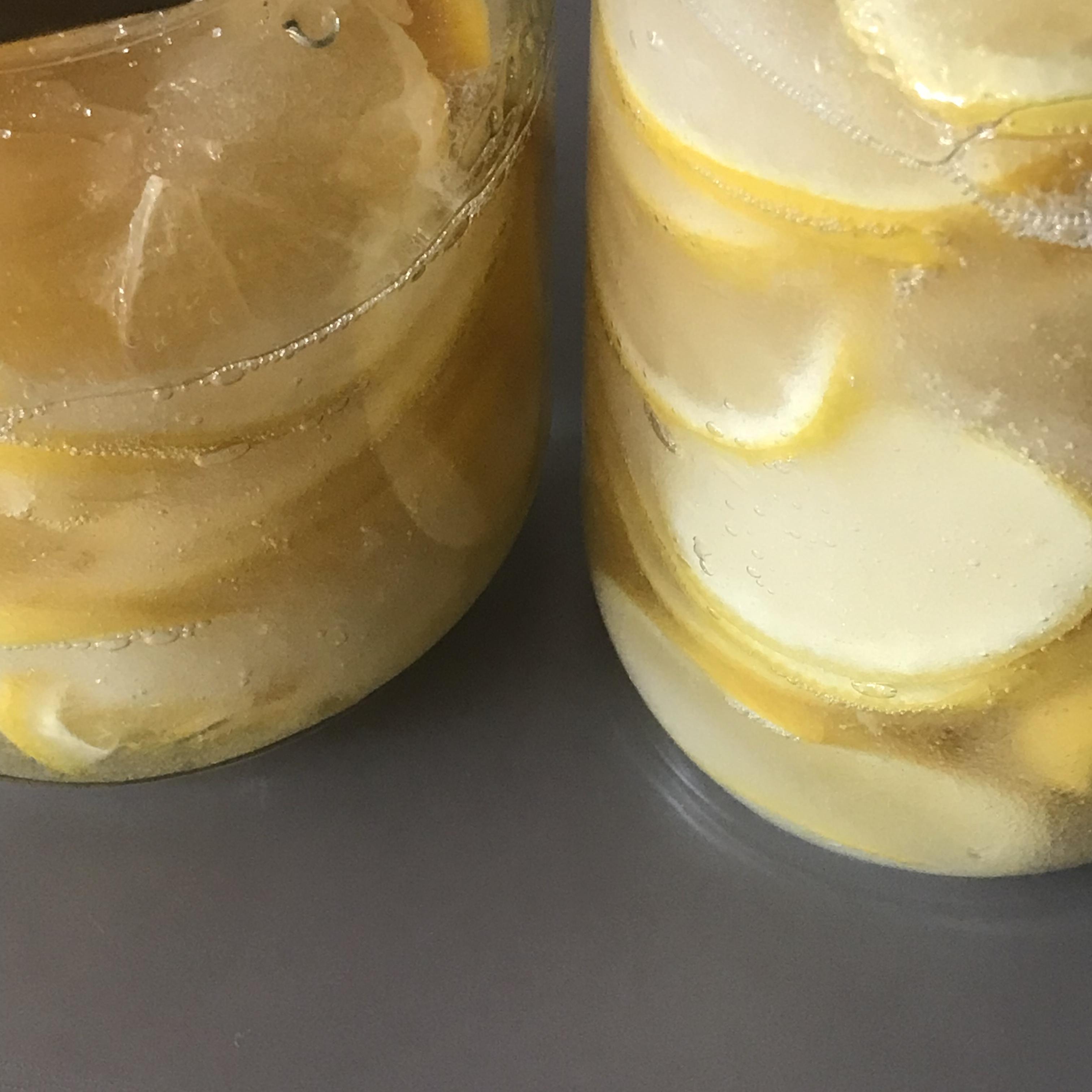 Step 7 완성된 레몬청을 유리병에 담고 마지막에 꿀을 적당히 넣어 주세요. 병뚜껑에 묻은 설탕이나 꿀은 깨끗한 행주나 키친타월로 끈적이지 않게 잘 닦아줍니다. 실온에 2-3일 정도 뒀다가 설탕이 모두 녹으면 냉장고에 보관하면 감기예방에도 좋고 피로 회복에도 좋은 수제 레몬청 완성!